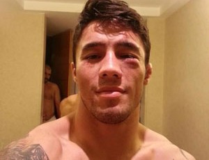 Diego Nunes mostra rosto machucado por